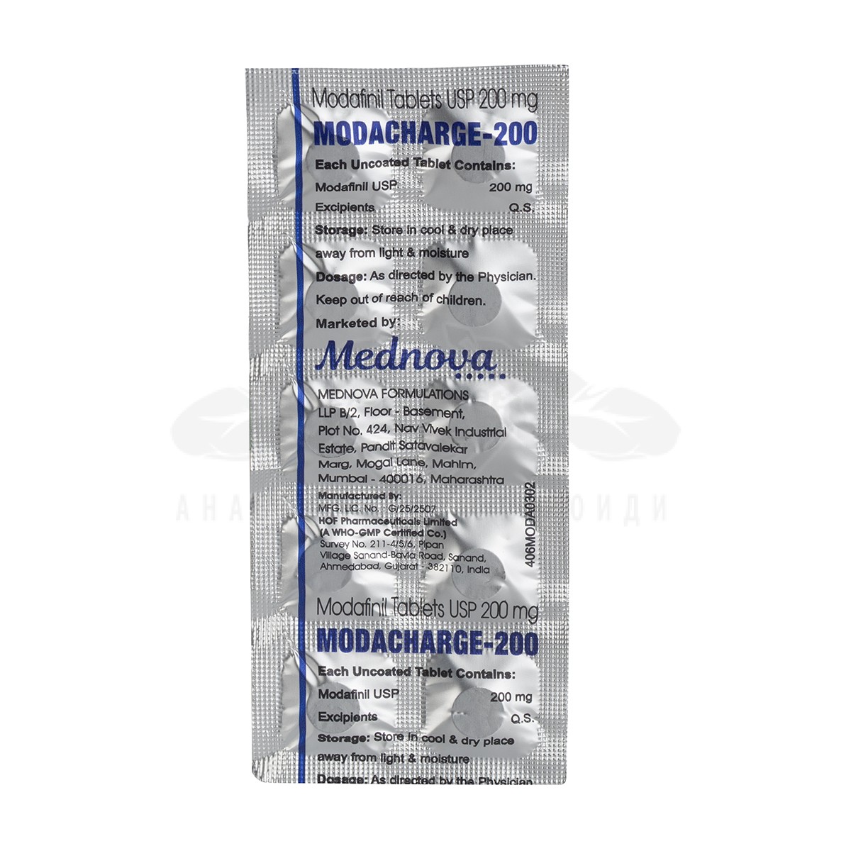 Modacharge-200 (Modafinil) – 10 табл. х 200 мг.